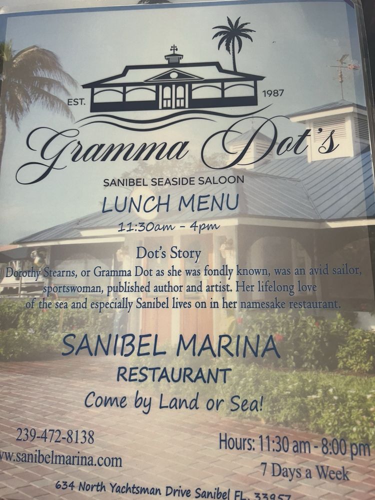 Gramma Dot's Restaurant in Sanibel, Florida is a seafood paradise offering a range of dishes for lunch and dinner. The restaurant provides a casual dining experience with outdoor seating and a gender-neutral restroom. With a menu catering to various dietary needs, Gramma Dot's is perfect for groups and families. Their extensive beverage list includes classics like Arnold Palmer and Coke, as well as a selection of wines and bottled beers. The attentive waitstaff and convenient amenities like Wi-Fi and catering services make dining at Gramma Dot's a delightful experience. Don't miss out on their flavorful seafood options and cozy atmosphere when in Sanibel.